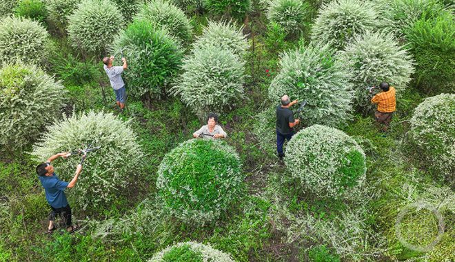 9月12日,重庆市垫江县周嘉镇雨山村苗圃基地,工人在给苗圃进行修剪管理。