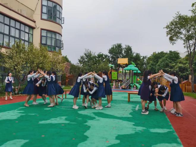 过河搭桥中,老师们步伐轻盈、互相扶持,仿佛在告诉彼此:教育之路从来不是独行,而是团队共筑前行的桥。